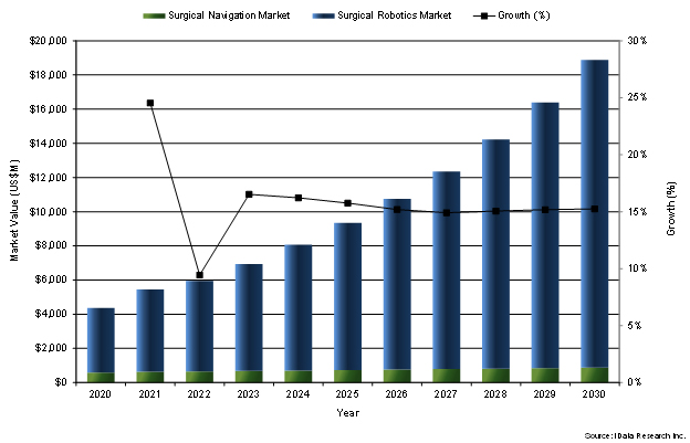 Overall, the market valuation of both surgical navigation and robotics, comprising the capital equipment in outright purchases, disposables, and other accessories and service and maintenance revenue market segments, will grow from $6.9 billion in 2023 to $18.9 billion in 2030.