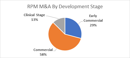 Perhaps one seminal difference in these markets is that technology-driven versus biologically driven investment tends to come in smaller amounts with clearer inflection point criteria. A review of the M&A markets (Figures 3-6) reveals that, unlike the biotech markets, where licensing, partnering, and M&A can happen even in preclinical stages and sometimes at seemingly excessive valuation and outsized rounds, the medtech and health tech markets primarily require revenue traction to demonstrate candidacy for acquisition. RPM is still a smaller piece of the overall medical technology pie, but the M&A markets will usually lag the financing markets and we fully expect further consolidation in the space.