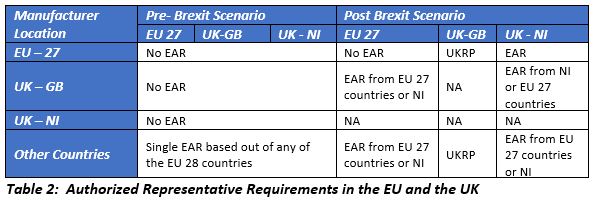 The European Authorized Representatives (EARs) based out of the UK will no longer be recognized by the EU and the manufacturers shall appoint a new EAR from one of the EU 27 countries or Northern Ireland. Manufacturers from countries other than the UK and the EU need to appoint an EAR (with roles and responsibilities defined in the MDR and IVDR) to market the device in Northern Ireland.