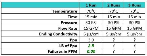 There are many who believe in the "magic number three" to demonstrate reproducibility or stability, but the use of continued monitoring of cleaning process parameters (temperature, time, pressure, flow rate, conductivity, etc.) may be more than adequate substitutes for ongoing sampling. Consider Table 5, where the cleaning process parameters are measured and recorded for every cleaning. After the data collected from the first run indicate excellent cleaning results, would different results be expected for the second and third runs knowing that the cleaning process parameters were exactly the same? What results would be expected if the first run was for a new product knowing that the cleaning process had been previously qualified on other products using these parameters?