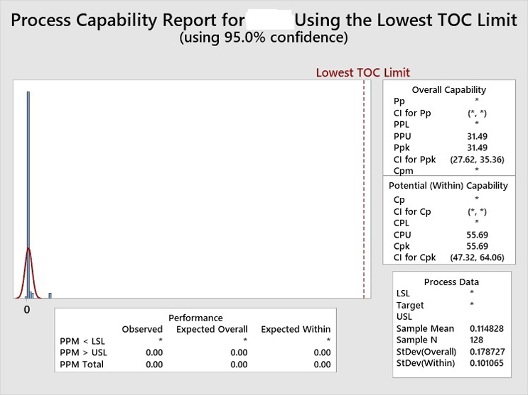 Figure 6: Process Capability Report on the Aggregated TOC Data for the Topical Pharmaceutical Facility