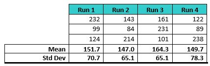 Table 1: Random TOC Swab Data Used for Simulation 1. Three data points were generated four times to represent data from four runs.