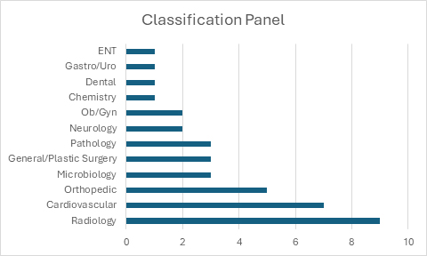 The authorized PCCPs cover a diverse range of device classification panels, reflecting the wide applicability of the PCCP framework across different medical specialties. The breakdown is as follows: