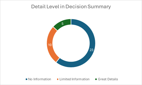 The level of detail provided in PCCP decision summaries varies, with some offering comprehensive insights while others are more limited. The categories include: