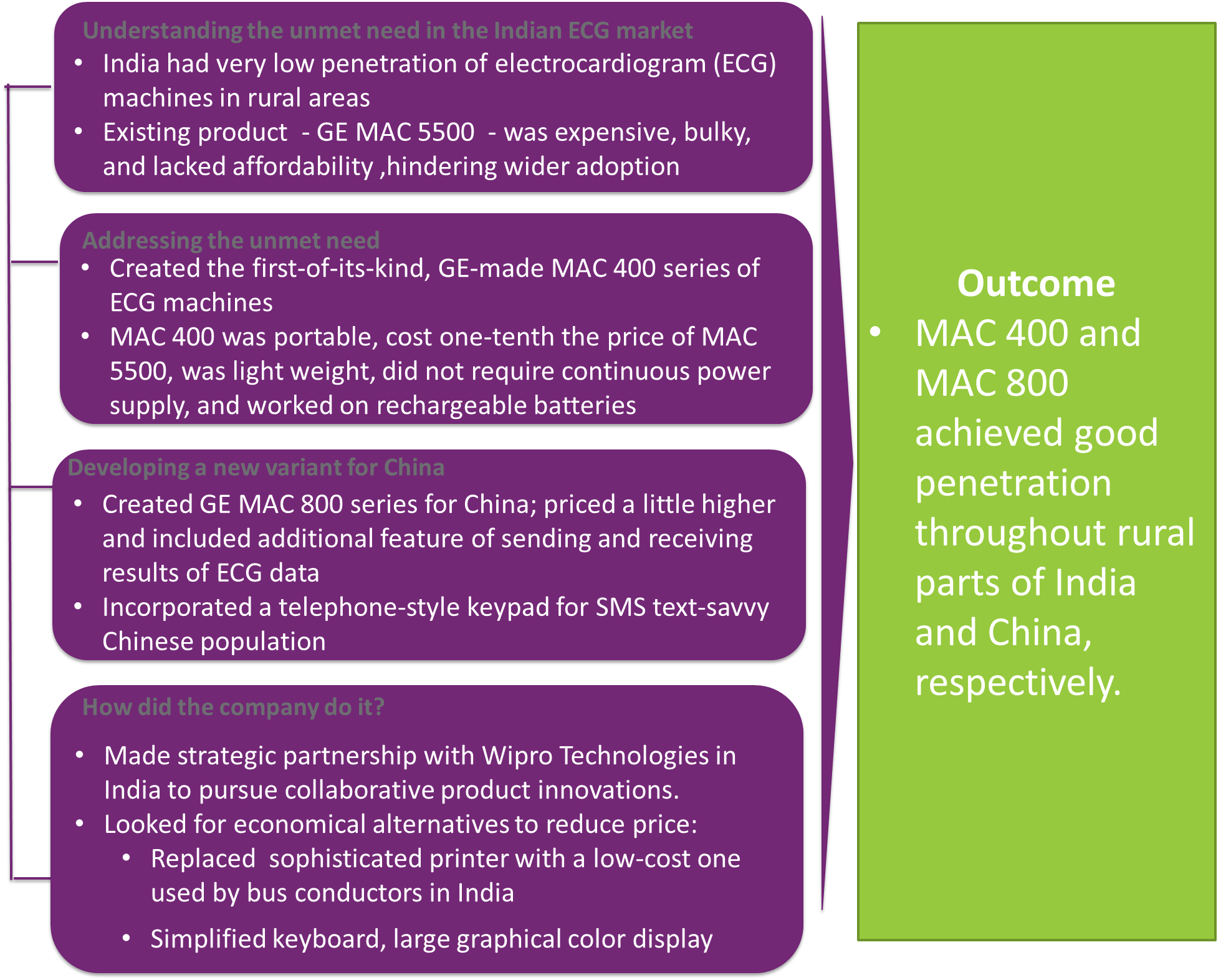 There are many local and global companies that have successfully marketed their devices in these regions because they have followed the concept of frugal innovation in their product design and hence offered benefits suitable for the actual needs of the market.