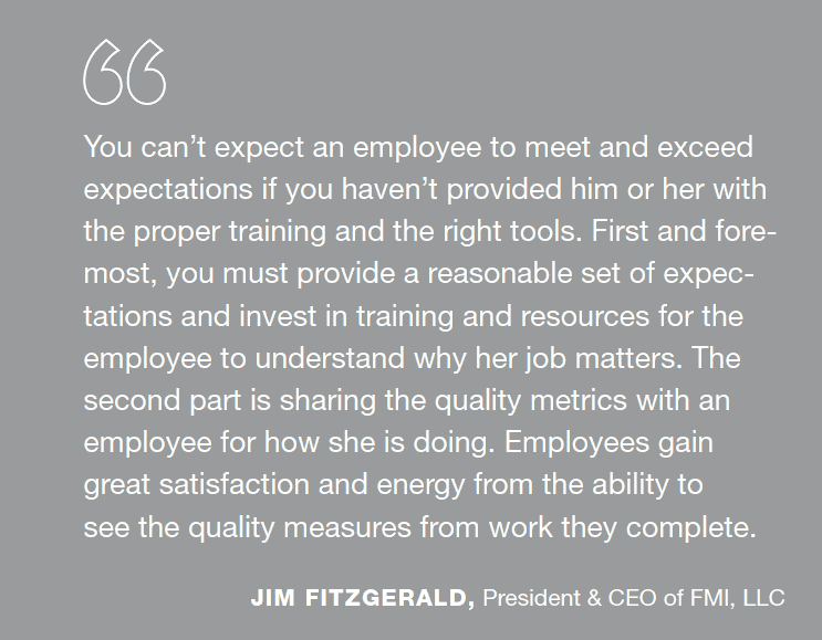 Employees should be hired, trained, and equipped to meet the quality expectations of the job. They should have a good understanding of not only how to do their job, but also why their job is important, and why it is important to do the job as defined. Employees should also have a clear understanding of the consequences of cutting corners.
