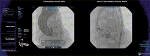 - Use of fluoroscopy, cineangiography, and contrast injection to visualize and measure the aortic valve and determine a site for its correct placement