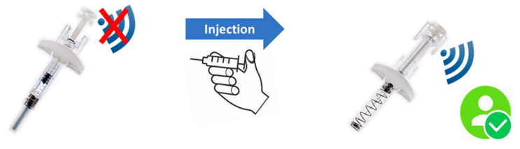 Therefore, for adherence and compliance, it is essential to use a technology that only provides a signal after the device is used/after the medication is injected to confirm that the device has been used. And this is what we have done at SureMed Tech. We have developed our proprietary NFC technology whereby the device does not transmit any signal until it has been used, as shown in Figure 1 below. This way, it provides a much more reliable medication use confirmation. In patient surveys, we found that users prefer this type of connected device, as it is in line with their daily experience with NFC technology (badge access, tap to pay, etc.). In addition, we found that patients prefer a device that transmits signal only after use because it keeps things simple and straightforward for them.