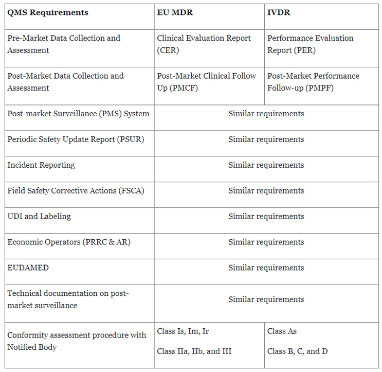 Table 1: Summary of key QMS requirements under EU MDR and IVDR