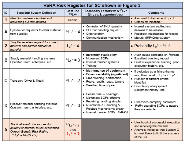 ReRA focuses on estimating SCLP^s and possibly a few LC^s. Of course, estimating these values presents many challenges, but the simplicity focuses the estimating on a few parameters that can be readily identified and analyzed by the risk analysis team. If a “do the best you can” approach is taken that includes gathering as much information, data, experience, and knowledge as possible, the SC’s risk can be reasonably evaluated, managed, and accepted based on achieving an ALARP (as low as reasonably possible) criteria for the SC’s probability of success.