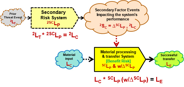 Figure 4: Figure 4 adds a secondary risk to the primary risk. Secondary cause events to the primary system come from secondary threats passing through a secondary risk system. Effective secondary risk systems can be used to control the probability of the secondary cause impacting the primary system.