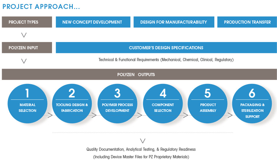 At Polyzen, we use a robust stage-gating process to ensure that every product we develop meets the customer’s design and functional requirements. Our process also ensures all of our products are high-quality, safe, effective, and easily transferrable to sustainable manufacturing processes.