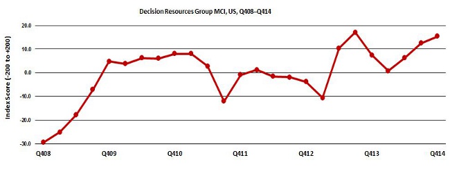 At Decision Resources Group, we’ve been measuring how confidence in the medtech industry has changed since the financial crisis in 2008, with a particular focus on the United States. Our analysis, called the Medtech Confidence Index (MCI), measures facilities’ confidence in the national economy, their financial health, and their procedure volume outlook, once per quarter.
