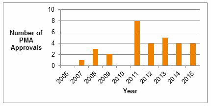 Fig. 1 – Number of PMA Approvals for Companion Diagnostics, 2006-2015