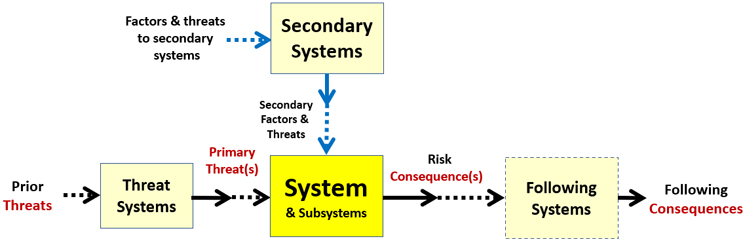 - All inputs to a system are possible threats, and all outputs are “at risk” and can be viewed as possible risk consequences.