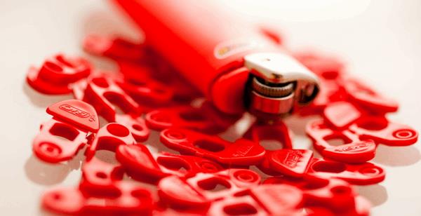 Acetal, also known as polyoxymethylene (POM), polyacetal, and polyformaldehyde, is a semi-crystalline thermoplastic with an interesting mix of properties. First, it has excellent mechanical properties, including high strength, stiffness, and toughness. Second, it is resistant to a variety of chemicals – a result of its crystalline structure. Third, acetal has unique characteristics of tribology – the science of friction, lubricity, and wear. It has a very low coefficient of friction and outstanding wear characteristics, all of which can be further enhanced with additives, such as chemical lubricants and PTFE. The combination of these characteristics make acetal ideal for many applications, including use as tabs on lighters (pictured at right).