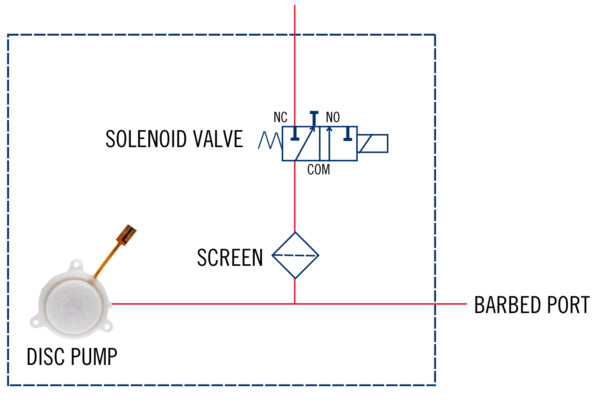 Figure 1. Schematic of a BPM system integrating a disc pump (US series)