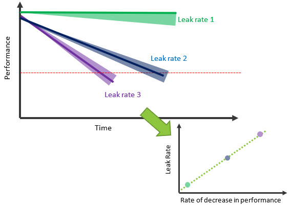 Figure 4: Establish acceptance criteria using a correlation between leak rate and rate of decrease in performance.