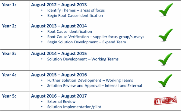At the outset of this supply chain initiative, the original assumption was that suppliers cannot consistently provide what is needed. However, through our research we discovered that manufacturers often: do not know what specifications are actually needed, do not involve suppliers in development discussions at all or at the right time, do not explore the full expertise of suppliers, do not understand their own process well enough to know how the incoming material will impact their process, and do not ask for the process capability of their suppliers.