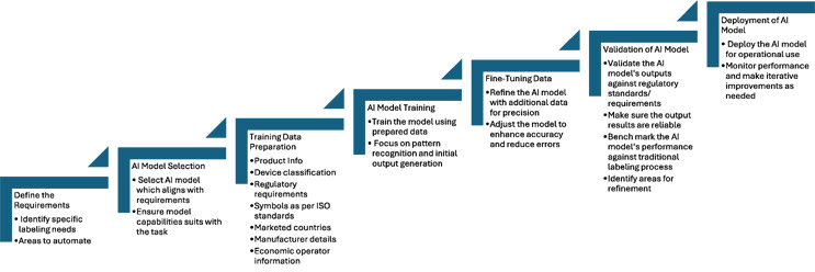 Generative AI offers a solution to streamline the labeling development process. During the initial stage we need to select the appropriate AI model and, with the right amount of training data, manufacturers can enhance their labeling practices. We need to provide a distinct range of labeled examples, including product information, device classifications, regulatory requirements, symbols, marketed countries, manufacturer details, economic operator information, and many more. The AI model can learn from sample data to recognize patterns and produce results.