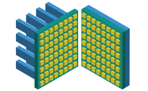 Figure 1. The illustration on the left represents a 3D brick configuration while the illustration on the right shows a 2D planar array configuration.