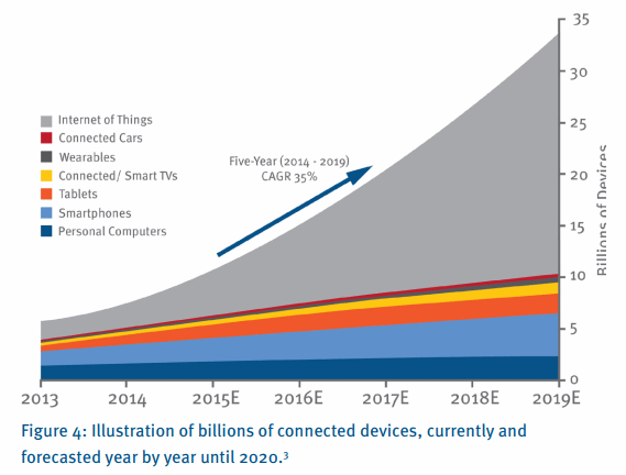 Finally, there is one further trend that is having a significant impact on the way we think about healthcare provision. Connectivity, for lack of a better word, is becoming ubiquitous. There are more connected devices on the planet than people. In fact, this tipping point occurred as far back as 2008. A recent forecast done by BI Intelligence estimates that in 2020 the average person will have 6 ‘Things’ on-line, with most forecasts indicating between 20 billion and 50 billion connected devices by then. The uptake rate of digital infrastructure is occurring at a rate 5 times faster than the adoption rate of electricity and telephones.