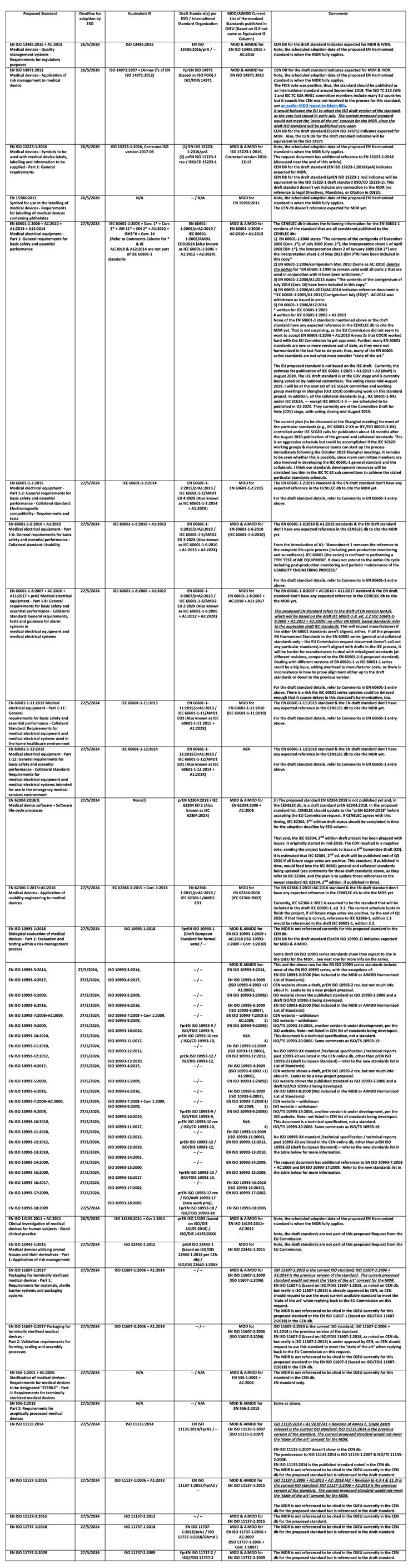 For some proposed standards on the list, the CEN or CENELEC databases (db) note that the standard is expected to be cited in the Official Journal of the European Union (OJEU) to the MDD, AIMDD, or IVDD. However, this is unlikely to occur, as resources are now focused on MDR & IVDR implementation. This means the proposed standard or the version noted hasn’t been cited in the OJEU previously. Still, I will not focus on the past (MDD, AIMDD, or IVDD), since many Notified Bodies authorized for the MDD, AIMDD, &/or IVDD have stopped accepting any further work for these Directives. This article is focused on the MDR’s future.